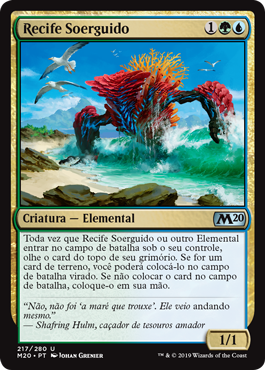 | Rules | Whenever Risen Reef or another Elemental enters the battlefield under your control, look at the top card of your library. If it's a land card, you may put it onto the battlefield tapped. If you don't put the card onto the battlefield, put it into your hand. |