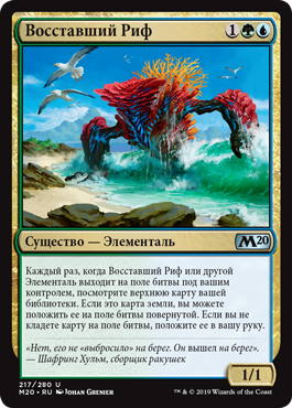 | Rules | Whenever Risen Reef or another Elemental enters the battlefield under your control, look at the top card of your library. If it's a land card, you may put it onto the battlefield tapped. If you don't put the card onto the battlefield, put it into your hand. |