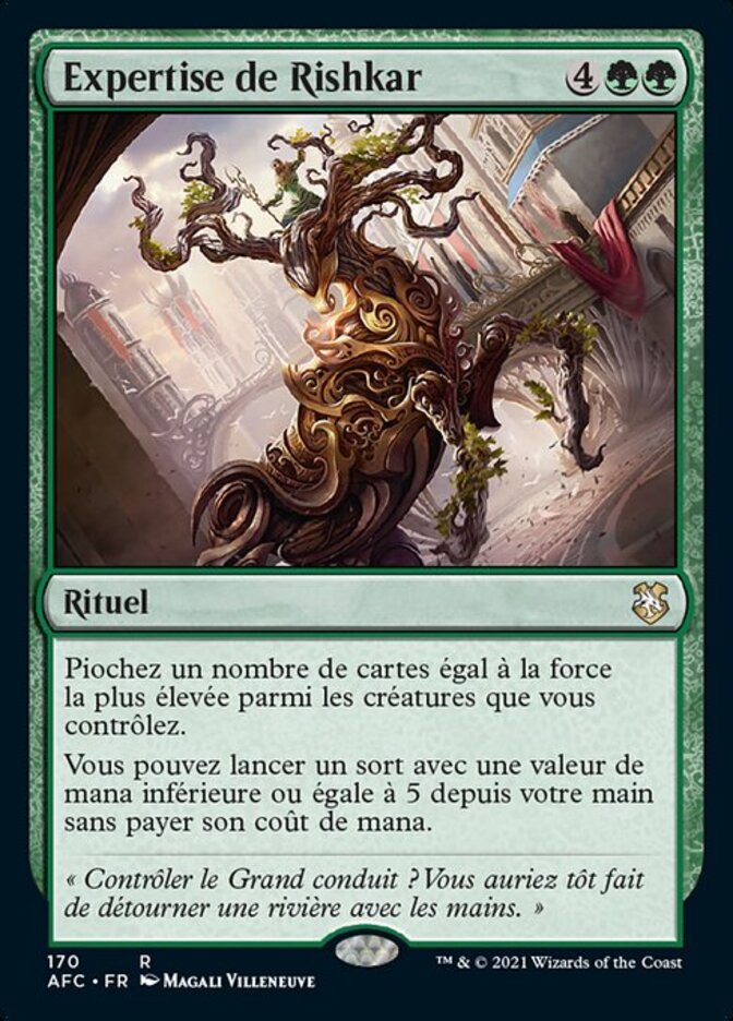 | Rules | Draw cards equal to the greatest power among creatures you control. You may cast a spell with mana value 5 or less from your hand without paying its mana cost. |