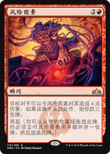 | Rules | Target opponent may have Risk Factor deal 4 damage to them. If that player doesn't, you draw three cards. Jump-start (You may cast this card from your graveyard by discarding a card in addition to paying its other costs. Then exile this card.) |
