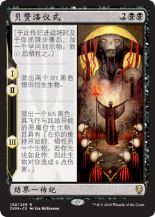 | Rules | (As this Saga enters and after your draw step, add a lore counter. Sacrifice after III.) I, II — Create two 0/1 black Cleric creature tokens. III — Create a 6/6 black Demon creature token with flying, trample, and "At the beginning of your upkeep, sacrifice another creature. If you can't, this creature deals 6 damage to you." |
