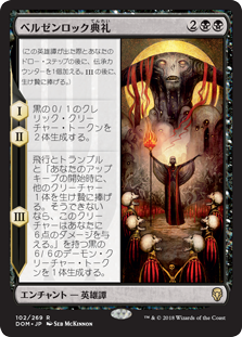 | Rules | (As this Saga enters and after your draw step, add a lore counter. Sacrifice after III.) I, II — Create two 0/1 black Cleric creature tokens. III — Create a 6/6 black Demon creature token with flying, trample, and "At the beginning of your upkeep, sacrifice another creature. If you can't, this creature deals 6 damage to you." |