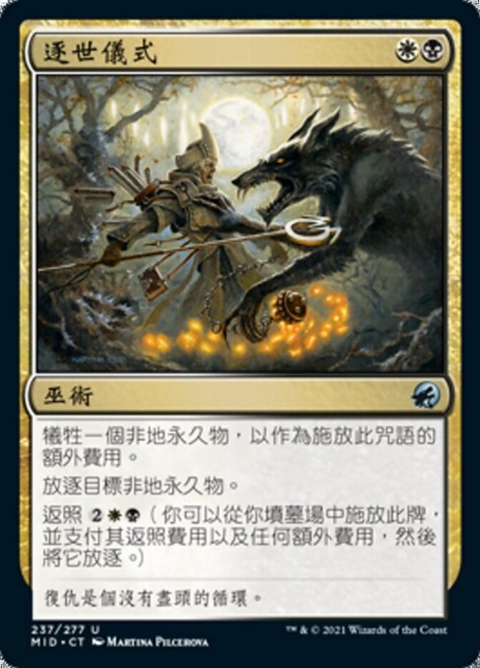 | Rules | As an additional cost to cast this spell, sacrifice a nonland permanent. Exile target nonland permanent. Flashback (You may cast this card from your graveyard for its flashback cost and any additional costs. Then exile it.) |