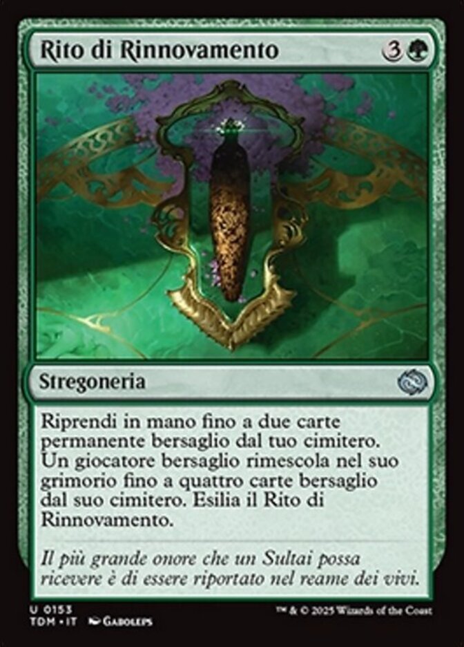 | Rules | Return up to two target permanent cards from your graveyard to your hand. Target player shuffles up to four target cards from their graveyard into their library. Exile Rite of Renewal. |