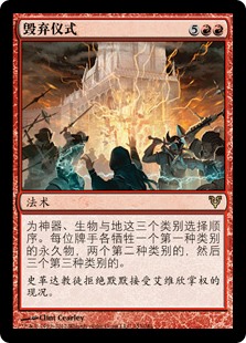 | Rules | Choose an order for artifacts, creatures, and lands. Each player sacrifices one permanent of the first type, sacrifices two of the second type, then sacrifices three of the third type. |
