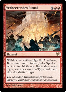 Rules Choose an order for artifacts, creatures, and lands. Each player sacrifices one permanent of the first type, sacrifices two of the second type, then sacrifices three of the third type.