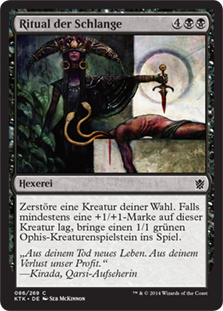 | Rules | Destroy target creature. If that creature had a +1/+1 counter on it, create a 1/1 green Snake creature token. |