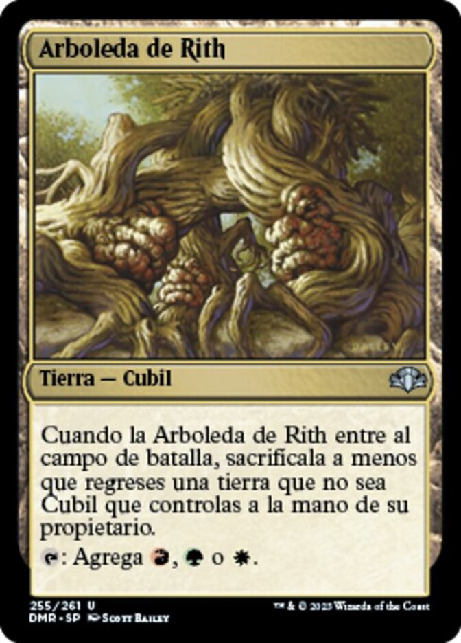 | Rules | When Rith's Grove enters the battlefield, sacrifice it unless you return a non-Lair land you control to its owner's hand. : Add , , or . |