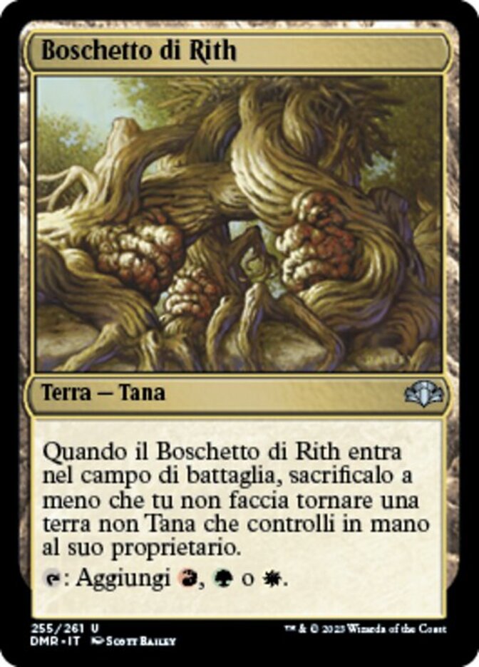 | Rules | When Rith's Grove enters the battlefield, sacrifice it unless you return a non-Lair land you control to its owner's hand. : Add , , or . |