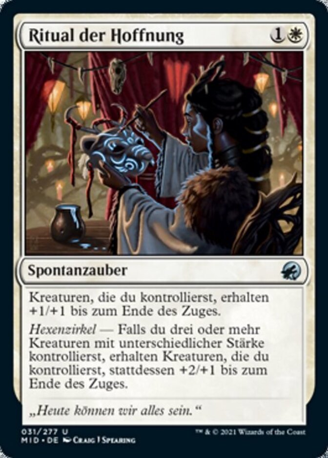 | Rules | Creatures you control get +1/+1 until end of turn. Coven — If you control three or more creatures with different powers, creatures you control get +2/+1 until end of turn instead. |