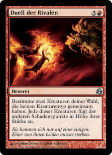| Rules | Choose two target creatures that share no creature types. Those creatures fight each other. (Each deals damage equal to its power to the other.) |