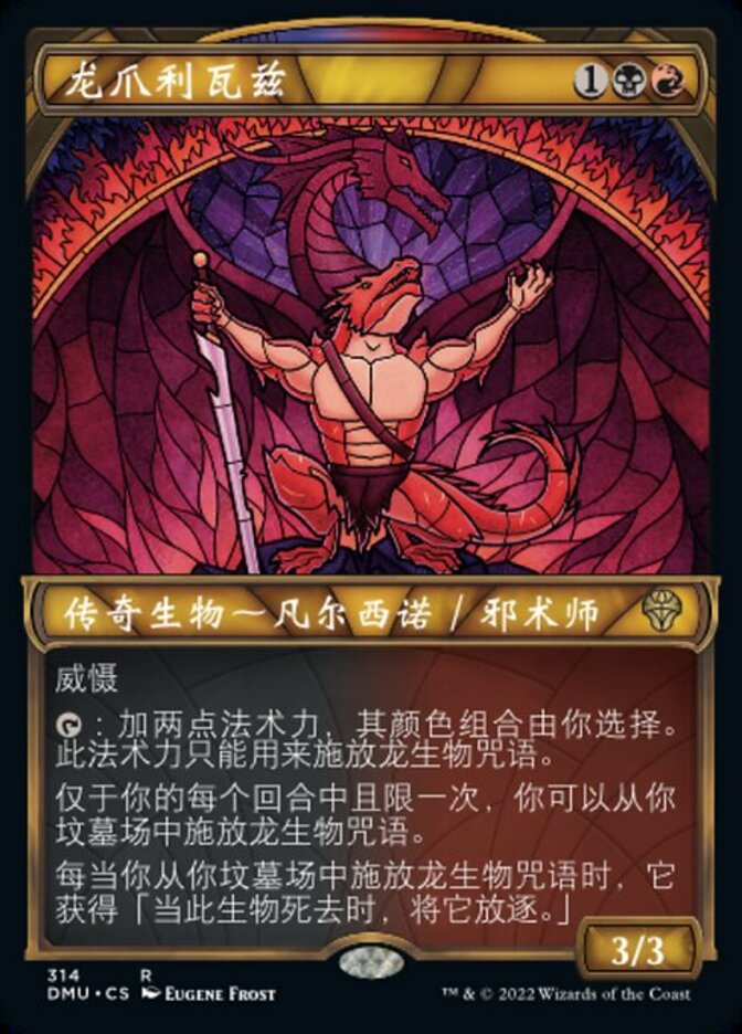 | Rules | Menace : Add two mana in any combination of colors. Spend this mana only to cast Dragon creature spells. Once during each of your turns, you may cast a Dragon creature spell from your graveyard. Whenever you cast a Dragon creature spell from your graveyard, it gains "When this creature dies, exile it." |