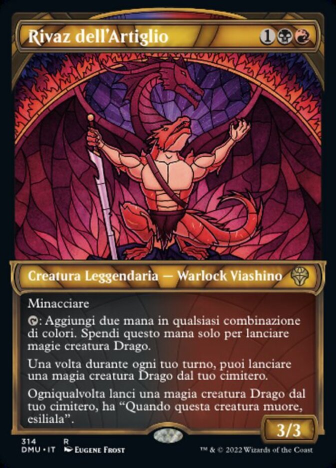 | Rules | Menace : Add two mana in any combination of colors. Spend this mana only to cast Dragon creature spells. Once during each of your turns, you may cast a Dragon creature spell from your graveyard. Whenever you cast a Dragon creature spell from your graveyard, it gains "When this creature dies, exile it." |