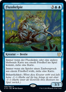 | Rules | Whenever River Kelpie or another permanent enters the battlefield from a graveyard, draw a card. Whenever a player casts a spell from a graveyard, draw a card. Persist (When this creature dies, if it had no -1/-1 counters on it, return it to the battlefield under its owner's control with a -1/-1 counter on it.) |