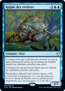 | Rules | Whenever River Kelpie or another permanent enters the battlefield from a graveyard, draw a card. Whenever a player casts a spell from a graveyard, draw a card. Persist (When this creature dies, if it had no -1/-1 counters on it, return it to the battlefield under its owner's control with a -1/-1 counter on it.) |