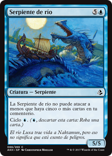 | Rules | River Serpent can't attack unless there are five or more cards in your graveyard. Cycling (, Discard this card: Draw a card.) |