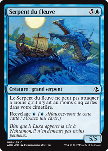 | Rules | River Serpent can't attack unless there are five or more cards in your graveyard. Cycling (, Discard this card: Draw a card.) |