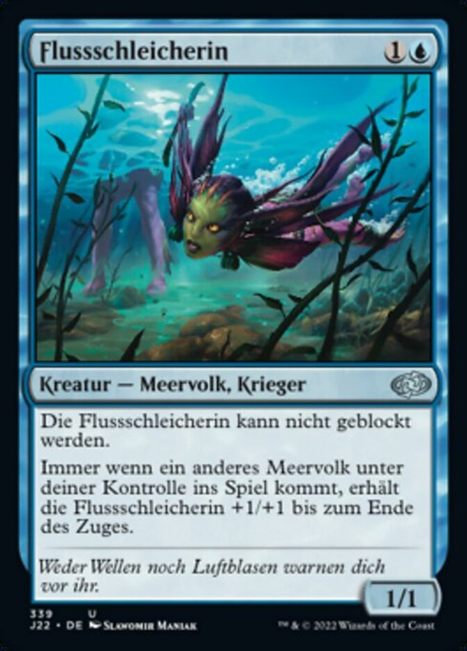 | Rules | River Sneak can't be blocked. Whenever another Merfolk enters the battlefield under your control, River Sneak gets +1/+1 until end of turn. |