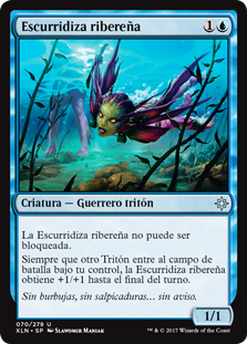 | Rules | River Sneak can't be blocked. Whenever another Merfolk enters the battlefield under your control, River Sneak gets +1/+1 until end of turn. |