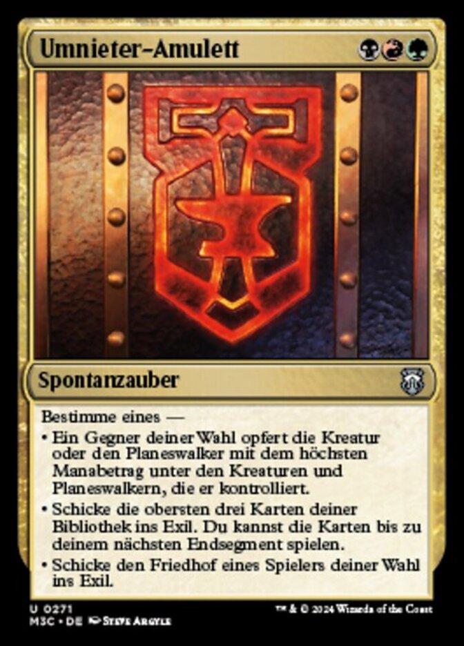 | Rules | Choose one — • Target opponent sacrifices a creature or planeswalker they control with the highest mana value among creatures and planeswalkers they control. • Exile the top three cards of your library. Until your next end step, you may play those cards. • Exile target player's graveyard. |