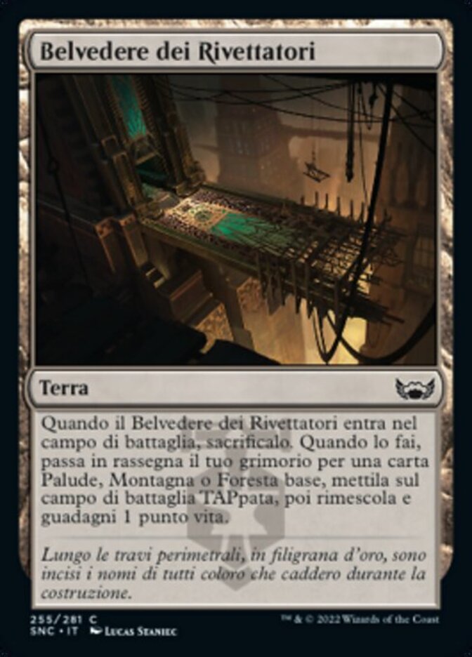 | Rules | When Riveteers Overlook enters the battlefield, sacrifice it. When you do, search your library for a basic Swamp, Mountain, or Forest card, put it onto the battlefield tapped, then shuffle and you gain 1 life. |