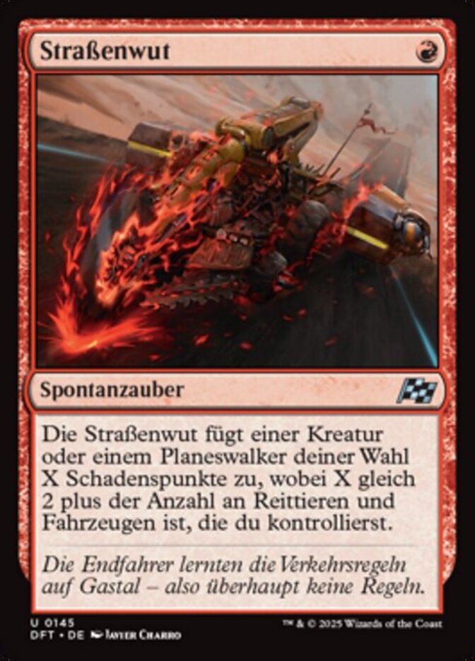 Rules Road Rage deals X damage to target creature or planeswalker, where X is 2 plus the number of Mounts and Vehicles you control.
