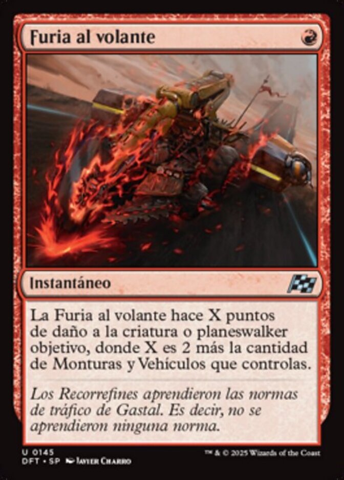 | Rules | Road Rage deals X damage to target creature or planeswalker, where X is 2 plus the number of Mounts and Vehicles you control. |