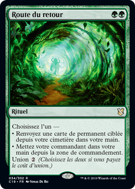 | Rules | Choose one — • Return target permanent card from your graveyard to your hand. • Put your commander into your hand from the command zone. Entwine (Choose both if you pay the entwine cost.) |