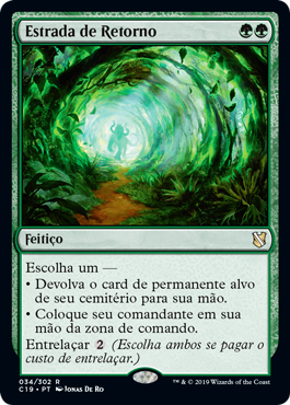 | Rules | Choose one — • Return target permanent card from your graveyard to your hand. • Put your commander into your hand from the command zone. Entwine (Choose both if you pay the entwine cost.) |
