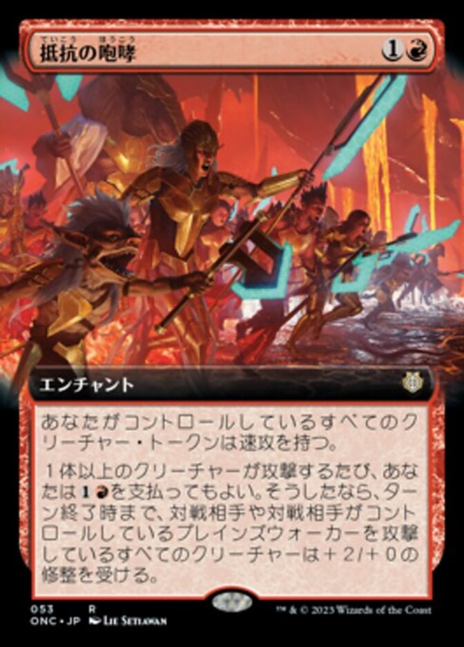 | Rules | Creature tokens you control have haste. Whenever one or more creatures attack, you may pay . If you do, creatures attacking your opponents and/or planeswalkers they control get +2/+0 until end of turn. |