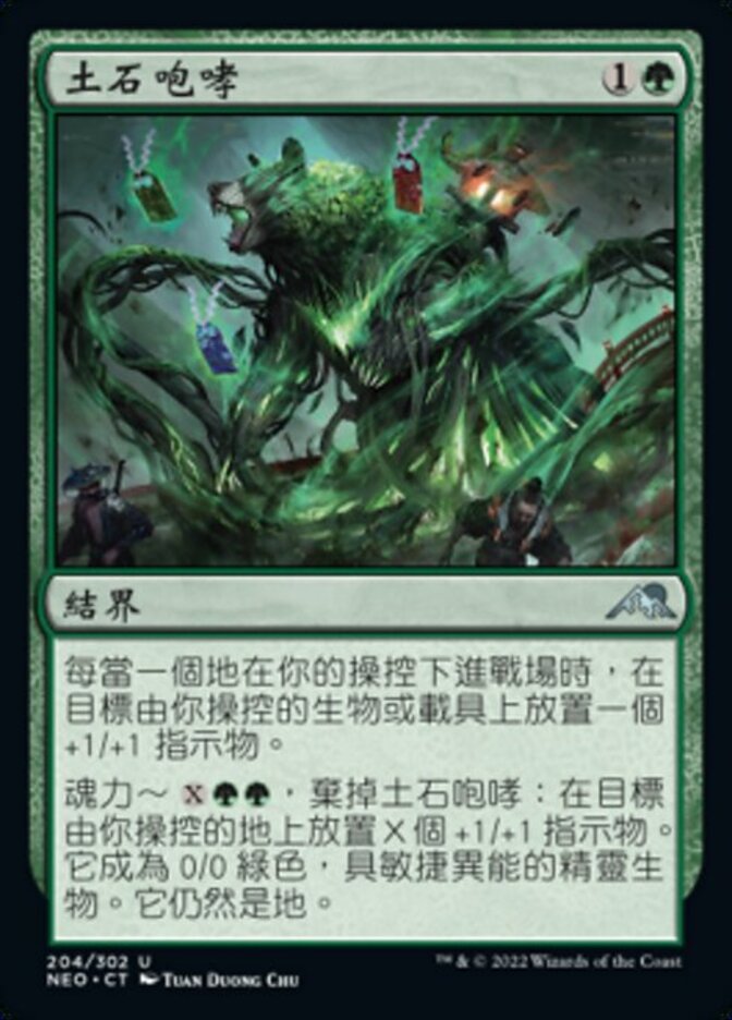 | Rules | Whenever a land enters the battlefield under your control, put a +1/+1 counter on target creature or Vehicle you control. Channel — , Discard Roaring Earth: Put X +1/+1 counters on target land you control. It becomes a 0/0 green Spirit creature with haste. It's still a land. |