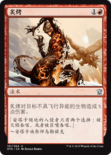| Rules | Roast deals 5 damage to target creature without flying. |