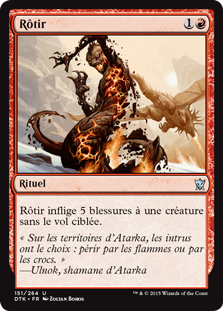 | Rules | Roast deals 5 damage to target creature without flying. |
