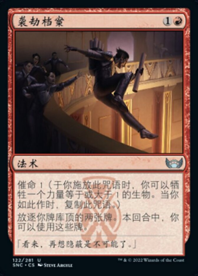 | Rules | Casualty 1 (As you cast this spell, you may sacrifice a creature with power 1 or greater. When you do, copy this spell.) Exile the top two cards of your library. You may play those cards this turn. |