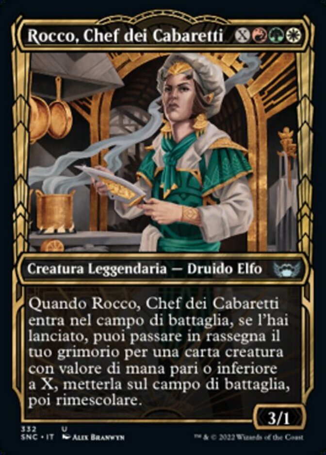 | Rules | When Rocco, Cabaretti Caterer enters the battlefield, if you cast it, you may search your library for a creature card with mana value X or less, put it onto the battlefield, then shuffle. |