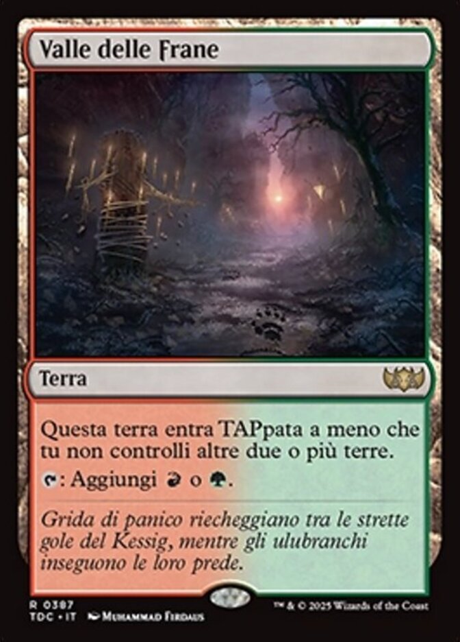 | Rules | Rockfall Vale enters the battlefield tapped unless you control two or more other lands. : Add or . |