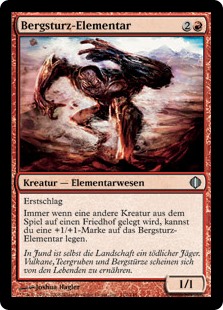 | Rules | First strike Whenever another creature dies, you may put a +1/+1 counter on Rockslide Elemental. |