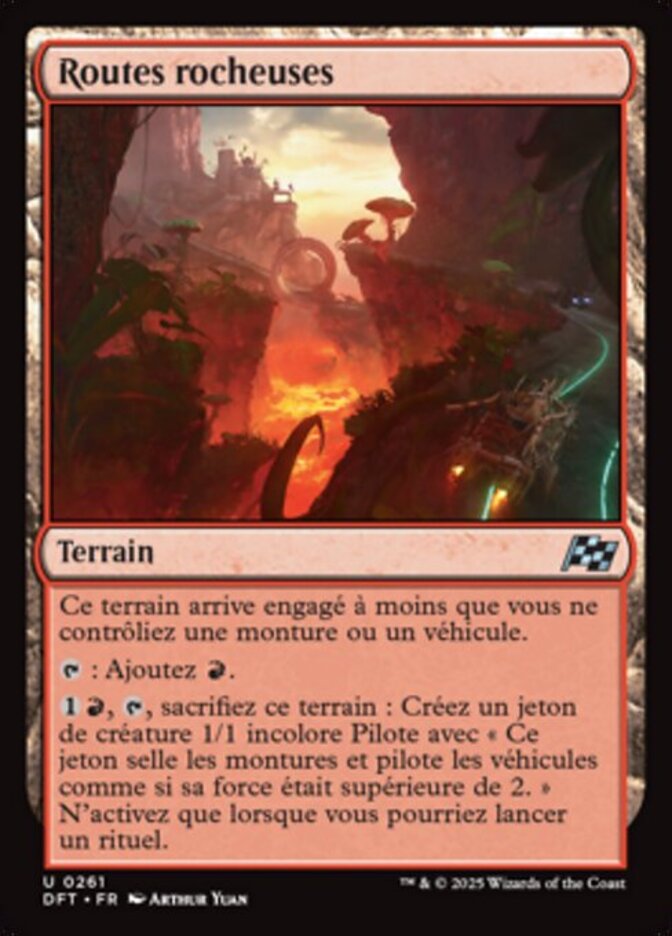 | Rules | This land enters tapped unless you control a Mount or Vehicle. : Add . , , Sacrifice this land: Create a 1/1 colorless Pilot creature token with "This token saddles Mounts and crews Vehicles as though its power were 2 greater." Activate only as a sorcery. |