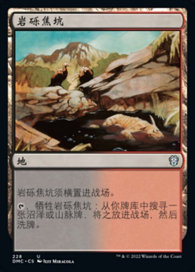 | Rules | Rocky Tar Pit enters the battlefield tapped. , Sacrifice Rocky Tar Pit: Search your library for a Swamp or Mountain card, put it onto the battlefield, then shuffle. |