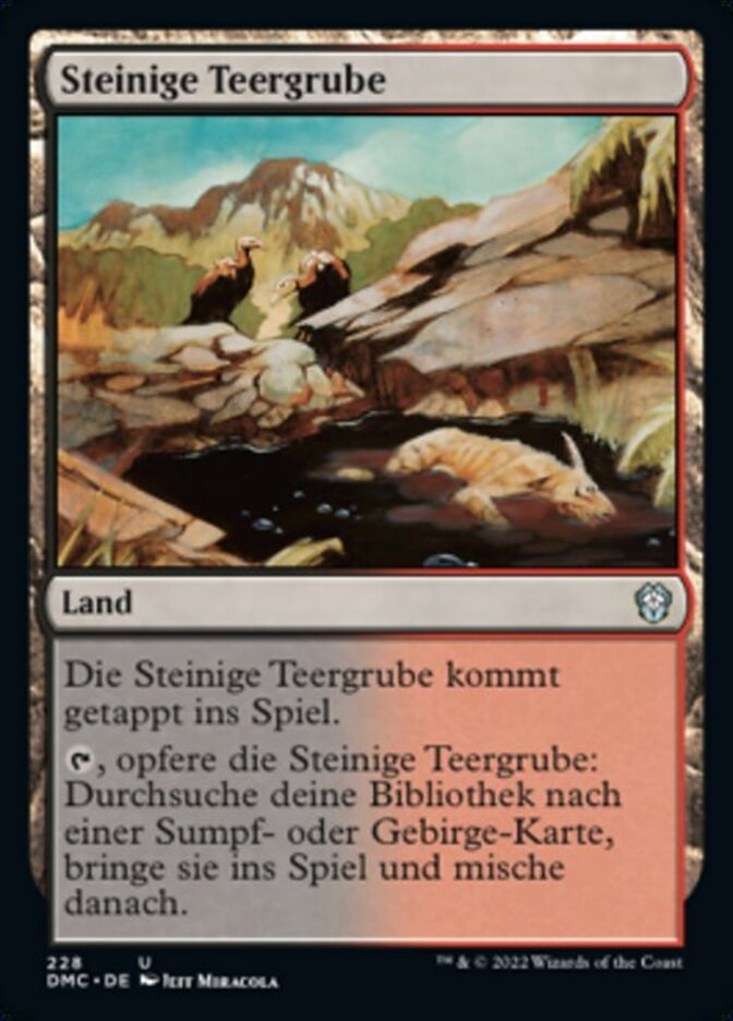 | Rules | Rocky Tar Pit enters the battlefield tapped. , Sacrifice Rocky Tar Pit: Search your library for a Swamp or Mountain card, put it onto the battlefield, then shuffle. |