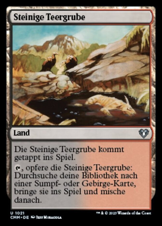 | Rules | Rocky Tar Pit enters the battlefield tapped. , Sacrifice Rocky Tar Pit: Search your library for a Swamp or Mountain card, put it onto the battlefield, then shuffle. |