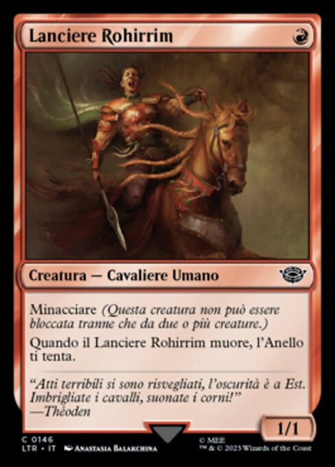 | Rules | Menace (This creature can't be blocked except by two or more creatures.) When Rohirrim Lancer dies, the Ring tempts you. |