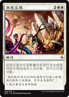 | Rules | Roil's Retribution deals 5 damage divided as you choose among any number of target attacking or blocking creatures. |