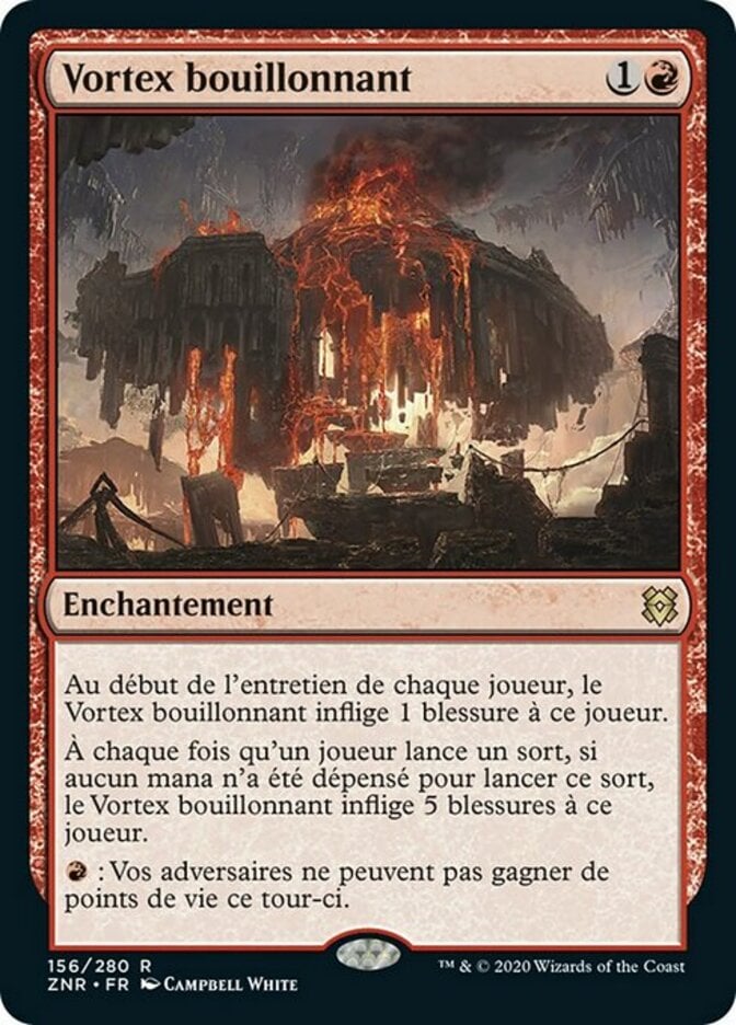 | Rules | At the beginning of each player's upkeep, Roiling Vortex deals 1 damage to them. Whenever a player casts a spell, if no mana was spent to cast that spell, Roiling Vortex deals 5 damage to that player. : Your opponents can't gain life this turn. |