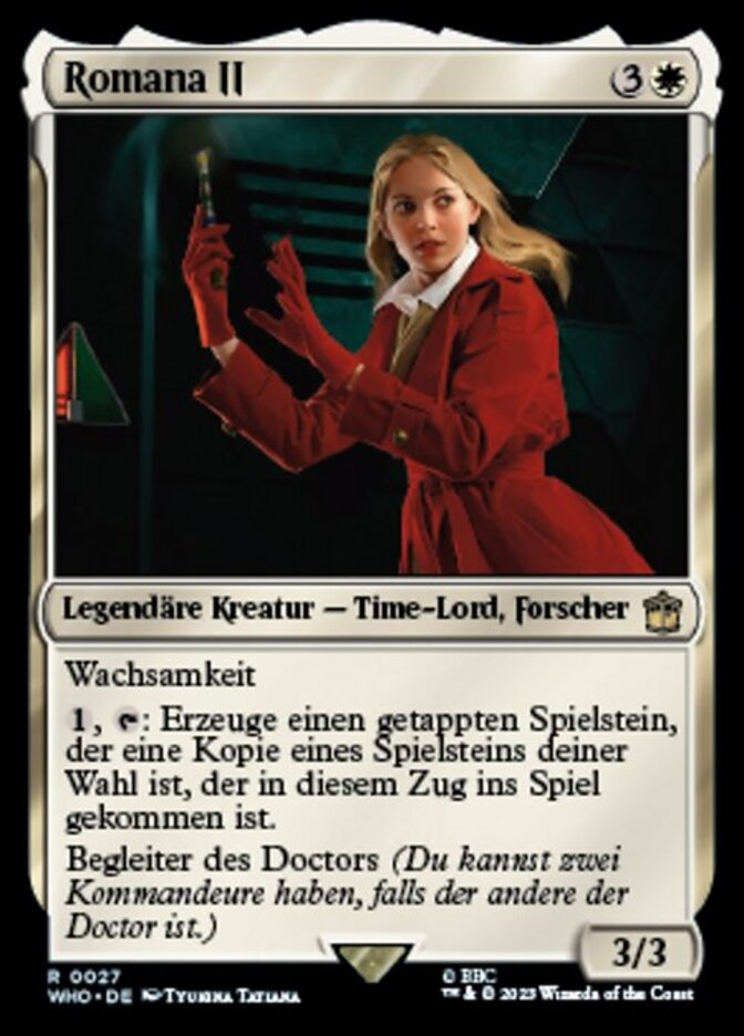 | Rules | Vigilance , : Create a tapped token that's a copy of target token that entered the battlefield this turn. Doctor's companion (You can have two commanders if the other is the Doctor.) |
