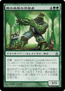 | Rules | Convoke (Your creatures can help cast this spell. Each creature you tap while casting this spell pays for or one mana of that creature's color.) Tap two untapped creatures you control: Root-Kin Ally gets +2/+2 until end of turn. |