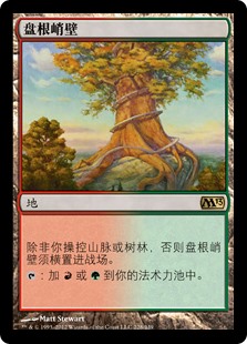 | Rules | Rootbound Crag enters the battlefield tapped unless you control a Mountain or a Forest. : Add or . |