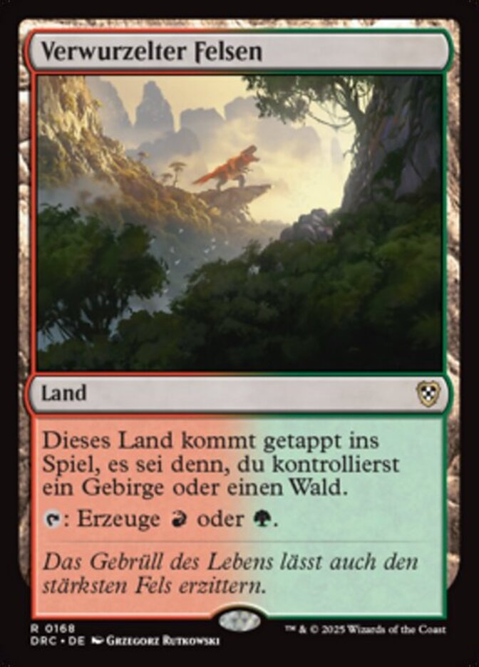 | Rules | Rootbound Crag enters the battlefield tapped unless you control a Mountain or a Forest. : Add or . |