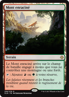 | Rules | Rootbound Crag enters the battlefield tapped unless you control a Mountain or a Forest. : Add or . |