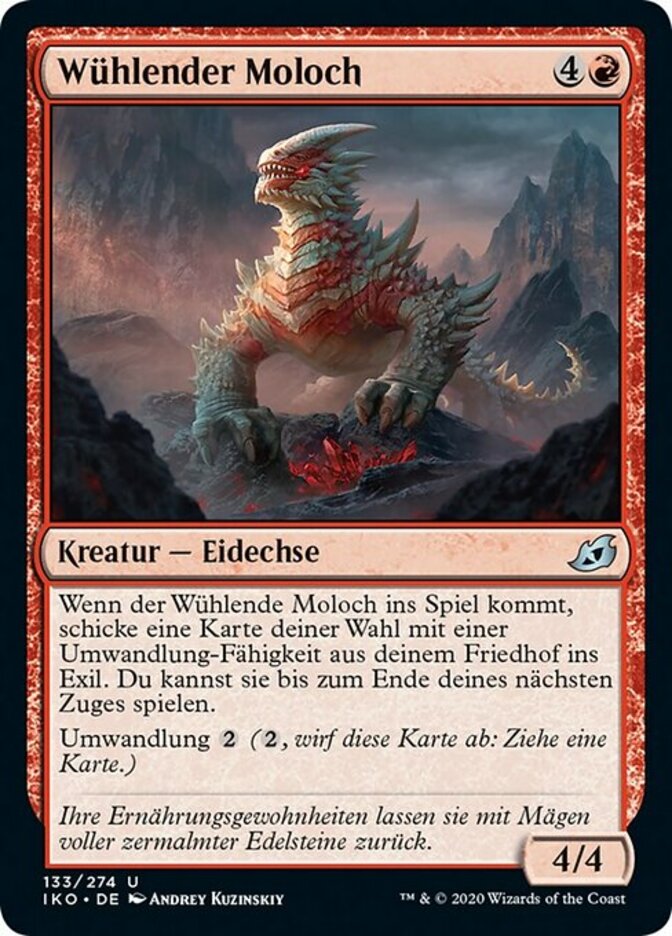 Rules When Rooting Moloch enters the battlefield, exile target card with a cycling ability from your graveyard. Until the end of your next turn, you may play that card.
